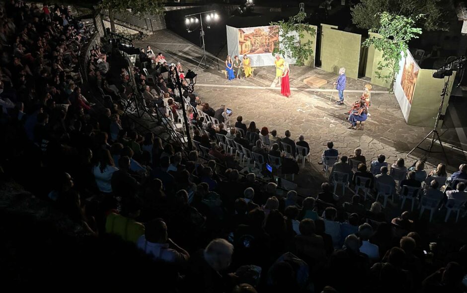 Φωτογραφίες από τη Θεατρική Ομάδα Μελιγγών που παρουσίασε τις “Εκκλησιάζουσες” του Αριστοφάνη, στο υπαίθριο θέατρο του χωριού μας την Κυριακή 3 Αυγούστου 2025.