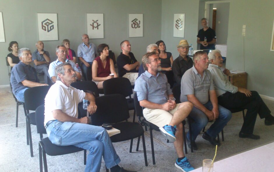 Η κα Ματίνα Δεδικούση, αρχιτέκτονας, υπεύθυνη τεκμηρίωσης του Μουσείου Μας, παρουσίασε τα μέχρι τώρα αποτελέσματα της δουλειάς της που αφορά την τυπική τεκμηρίωση των αντικειμένων του Μουσείου, ταυτόχρονα με την προφορική τους τεκμηρίωση βασιζόμενη σε συνεντεύξεις με χωριανούς.