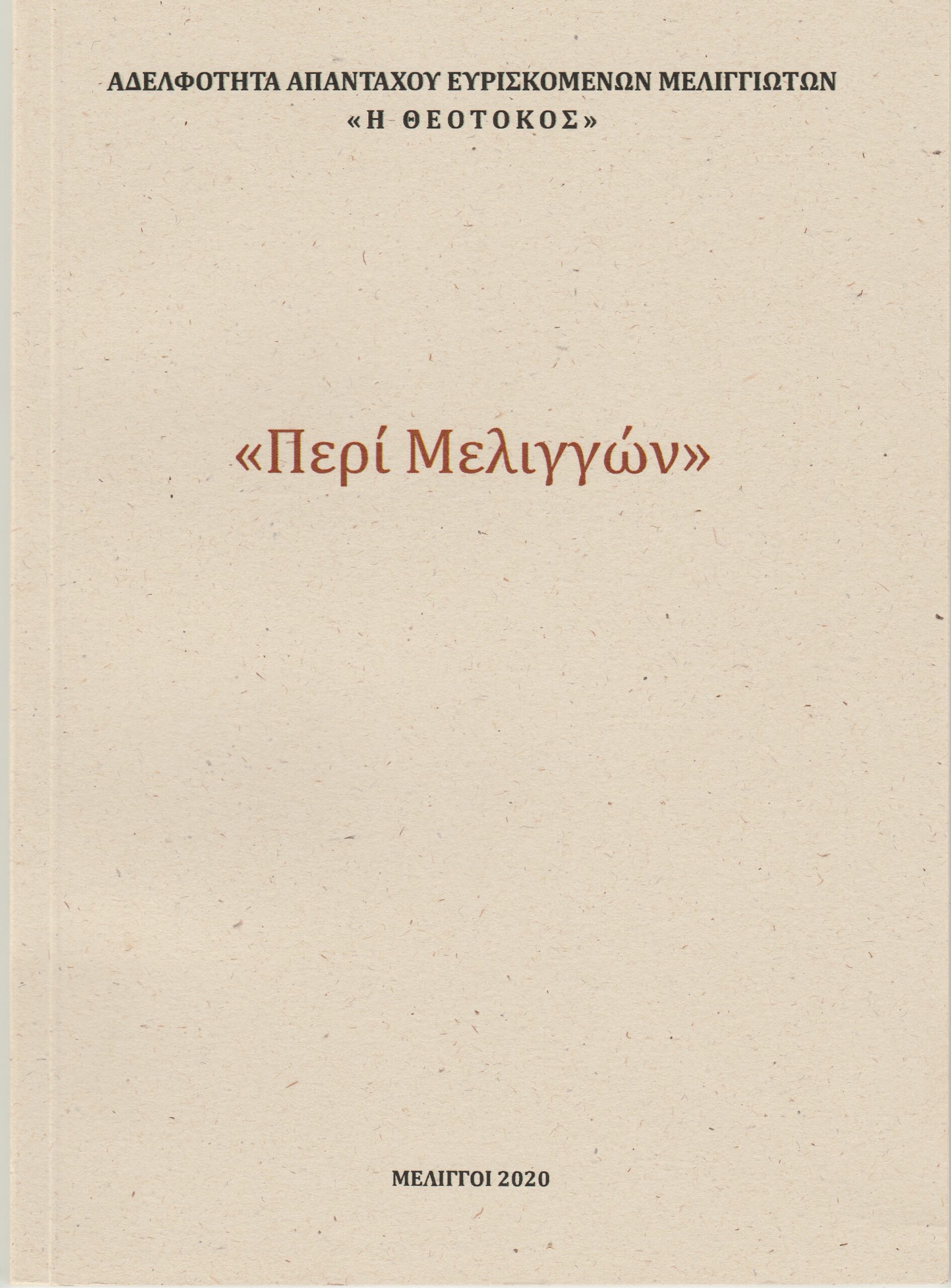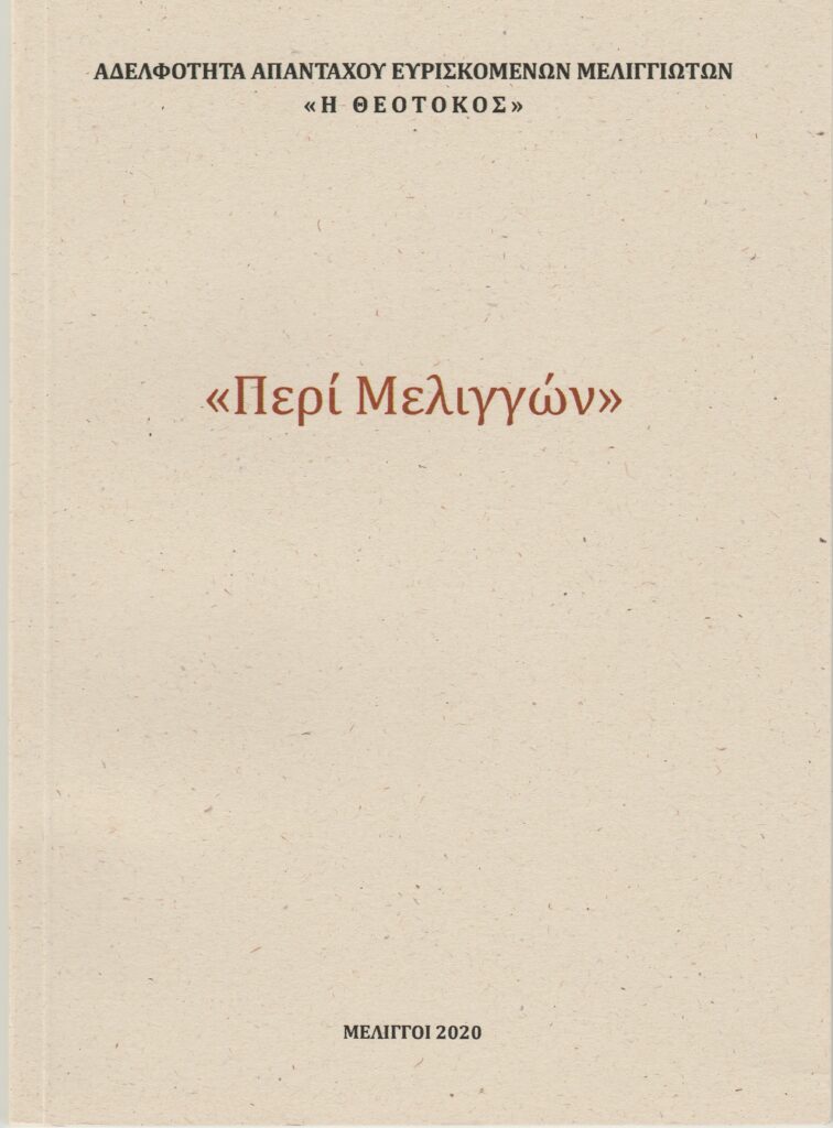 Έκδοση Αδελφότητας Απανταχού Ευρισκομένων Μελιγγιωτών, του 2020.